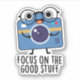 Focus On The Good Stuff Positive Camera Pun features a cute camera reminding us to focus on the good stuff. Perfect pun gift for family and friends who love cute camera puns.
