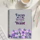 This purple floral design features dark and light grey, blue and purple colours. With a matching inspirational quote.