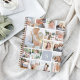 Customise this spiral notebook with 16 square photos arranged in a grid collage layout, with one large image and the remainder small. Your single initial monogram appears on a fog grey square at the lower right. Back cover has tone on tone stripes in matching shades of pale grey.