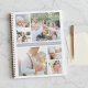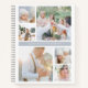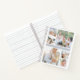 Chic photo collage notebook features six square photos (2 large, 4 small) arranged in a grid layout with a fog grey stripe running through the centre. Ideal for displaying your photography portfolio or treasured family photos. Back of notebook has tone on tone stripes in matching shades of grey.
