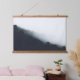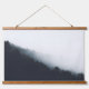 Landscape photograph of a disappearing morning fog over forest layers with diagonal lines.