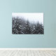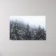 Landscape photograph of a beautiful spruce forest covered with snow wrapped in fog.