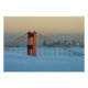 Fog rolls through the San Francisco bay covering the Golden Gate Bridge and city Pictured is the top of the Golden Gate Bridge's north span sticking out of the fog with the San Francisco background � Jim M. Goldstein / DanitaDelimont.com