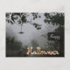 Foggy Autumn Garden with Spider HALLOWEEN Postcard