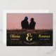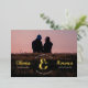 This Save the Date card features a full photo background with a large ampersand connecting the couple's names in real gold foil. The wedding date and location surround the ampersand giving the impression of a vintage stamp. The retro-inspired font for the customisable couple's names adds to the charm of this unique save the date card. The back of the card has a spot to share an additional photograph and a wedding website or other details of the big day.