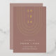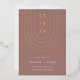A simple and elegant save the date design for modern couples, featuring an inverted gold foil arch bearing your wedding date on a spiced mauve clay background. Personalise with your names, wedding location, and website or additional details at the bottom.