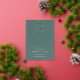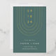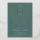 A simple and elegant save the date design for modern couples, featuring an inverted gold foil arch bearing your wedding date on a nature inspired moss green background. Personalise with your names, wedding location, and website or additional details at the bottom.
