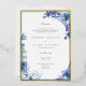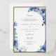 Foil border Reception Invitation with blue floral