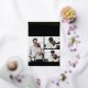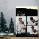 A simple, yet elegant Christmas card adorned with a bold, foil-stamped brushstroke design, and a coordinating script font greeting. The card has space for 3 photos to create a collage of beloved family photos. The customer's name appears at the bottom of the card, and is stamped in foil as well. The back of the card has space for a longer holiday message for loved ones.