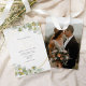 This foil eucalyptus greenery gold simple photo wedding foil invitation is a dreamy ensemble that embodies the essence of vintage charm and modern elegance. Featuring handcrafted designs adorned with eucalyptus greenery, and dusty rose florals accented with gold foil geometric borders and typography against a bright white and sage background. Explore our collection and infuse your wedding with the timeless allure of vintage blush florals and eucalyptus greenery. For personalised coordination or any questions, please don't hesitate to reach out.