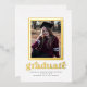 This stylish graduation invitation/announcement features a real foil frame around a single photo. The word "graduate" is also foil. The back of the card has space for a second photo.