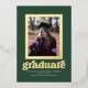 This stylish graduation invitation/announcement features a real foil frame around a single photo on a forest green coloured background. The word "graduate" is also foil. The back of the card has space for a second photo.