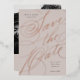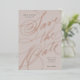 An elegant Save the Date card feature original hand lettering of the words "Save the Date" in script style.