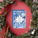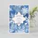 Wintery snowflake-themed wedding invitation with silver foil embellishments on the border, snowflakes, and couple names.