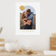 Showcase a cherished engagement, wedding, or family photo with this custom art print, which features a large, modern arch frame. In the top corner, there is a colourful circle with space for a monogram. Both the name and monogram are pressed in gold or silver foil for a more luxurious feel. This design is versatile enough to work with a variety of home decor styles.