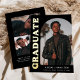 Stylish and trendy graduation announcement featuring the graduate's photo on the front with an offset arch photo frame. "Graduate" is displayed in bold gold foil lettering on a black background. Personalize the front of the arch photo graduation announcement by adding the graduate's name, school, and graduation year. The card reverses to display an additional 3 photos with space for custom text such as future college plans, career plans, graduation party details, etc. The gold foil graduation announcement is perfect for both high school and college graduates.