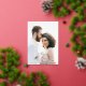 Modern foil minimal foliage botanical greenery script wedding photo save the date card. Hand painted eucalyptus, minimal foliage and modern rustic rattan wreath give this announcement card a luxurious feel. In classy greens, browns and greys.