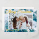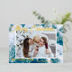 Real foil letters sit on top of a bright design of a snowy evergreen branch surrounding a tender white frame holding the image. This modern and cosy design can easily be personalised with your information and a photo. Script typography gives it a unique touch along with the wintery background.