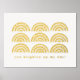 This art print features the phrase "You brighten up my day!", pressed in gold or silver foil and placed just below a series of hand-drawn rainbows. This design is perfect for a young child, teen, or anyone who loves to read words of encouragement. Another option would be to replace the message with your child's name for a cute custom art print!
