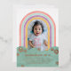Invite friends of all ages to your child's birthday party with this retro-themed invitation. The design features a child's photo framed by a colourful rainbow. The event details are placed over a simple cloud design, and surrounded by a handful of daisies pressed in gold or silver foil. The back of the card features a diagonal pattern in coordinating colours. This invitation would also be perfect for a baby shower!