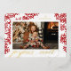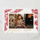 This elegant holiday photo card features a hand drawn border with red winter berries and foliage and a real gold foil flourished script greeting reading "Joyeux Noel" accenting a single customisable photo for a classic traditional holiday feel. The back adds unique interest with a matching red and white foliage pattern.