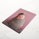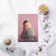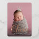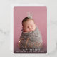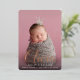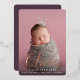 Let baby's name take centre stage with these elegant birth announcements, featuring a vertical photo with baby's first name overlaid in rose gold foil calligraphy script lettering. Personalise with baby's middle and last name and birth stats beneath, and add an additional photo to the back, along with a personal message.