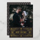 A festive Christmas holiday photo card featuring a decorative, hand-drawn curvilinear snowflake frame with gold foil accents.