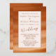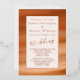 Front foil invitation. This terracotta wedding invitation features a rich blend of rust and clay tones, complemented by shimmering foil elements on the front that add a luxurious touch. The abstract design evokes sunlit canyons, desert charm, and cosy autumn evenings—ideal for boho-chic celebrations or modern rustic weddings.