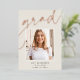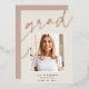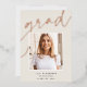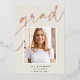Customise this chic graduation announcement with a square photo overlaid on the word "GRAD" in rose gold foil script, along with your name, school, and graduation year. Add an additional photo and a personal message to the back.