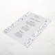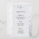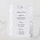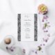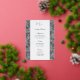 This wedding menu card is shown in an elegant silver foil floral print, script and standard text in a charcoal colour.