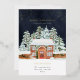 Charming holiday themed moving announcements let friends and family know that you're decking new halls this year! Elegant design features a snow covered brick home festooned with a Christmas wreath, with a snow covered roof and snowy evergreen trees. Personalise with your custom holiday greeting and your new address. Elegant gold foil lettering and accents complete the design.