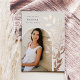 Chic and modern graduation announcement features a single vertical/portrait orientated photo in an arched layout, with climbing vines of rose gold foil botanical leaves along the right side. Personalise with your graduate's name, class year, and school and add a personal message to the back, along with an additional photo.