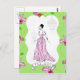 A vibrant floral print highlights a elegantly dress woman in a full lilac ballgown.
