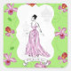 A vibrant floral print highlights a elegantly dress woman in a full lilac ballgown.
