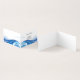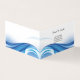 This stylish folded business card is shown with a blue wave abstract art print with black text colour.