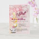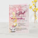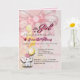 A folded baby girl shower invitation featuring a soft pink background, a decorative bow, and a cute elephant illustration with balloons. The design blends playful elements with a gentle, elegant layout. Fully customisable with event details, making it perfect for baby showers, celebrations, and welcoming a new baby girl.