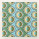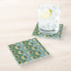 Folded flowers: retro blue-green pattern. glass coaster