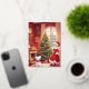 Christmas card having a young girl admiring her Christmas Tree.