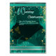 A folded wedding invitation featuring a rich green marble background, gold accents, sparkling highlights, and refined typography. The layout showcases the couple’s names and ceremony details in a clean, luxurious format. Perfect for modern weddings, receptions, and formal celebrations. Fully customizable with names, dates, venue information, and RSVP details.