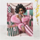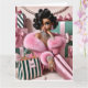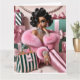 Chic woman surrounded by pink and green Xmas presents
