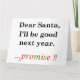 A funny Christmas design that always gets a laugh and looks great on apparel and gifts for adults as well as for kids. This unique Xmas design reads: "Dear Santa, I'll be good next year .....Promise!!"