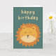 The front of the card features a cute lion and text that reads ‘Happy Birthday’