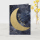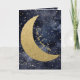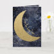 ' Love you long time' romantic card. Starry night midnight blue sky with a big gold glitter moon and 'love you long time' in a curved hand-written font. Inside is left blank for your own message, and has a starry night framed border. Click on the personalise button to change any of the text or add a name. Romantic card for someone you love on Valentine's Day, a birthday, an anniversary, wedding, Christmas or any special occasion throughout the year.