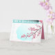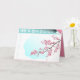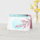 A simple branch of blossoms with a blue pastel touch as background + Korean Hangul fonts for "Happy New Year" into a blue rectangle. Design on horizontal greeting card with pink background inside the card. You can easily change English text (font, colour, size and position) and background colour by clicking the customise button.