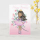 Beautiful African American Girl Birthday Card is hand drawn and finished with pastel watercolor paints by your artist for an elegant feminine Birthday greeting that you can personalise. The backdrop is a pink and white gradient and continues to the inside of the card. Back of card says "Created Just for You". Perfect for the Princess in your life. Ideal for young to mature women.