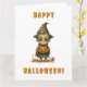 This Halloween, bring a touch of spooky sweetness with our adorable "Baby Frankenstein Witch" greeting card! Featuring a charming little monster dressed in a tattered, mossy green cloak and a floppy witch's hat, this character is all set for trick-or-treating with a carved pumpkin cradled in tiny hands. With big, expressive eyes and rosy cheeks, this loveable creature adds a playful twist to Halloween traditions, perfect for both kids and adults. The background is left clean and simple, letting the cute character shine, making it an ideal card for Halloween lovers of all ages. Whether you're spreading spooky cheer, sharing treats, or sending well-wishes to family and friends, this card captures the fun and heartwarming spirit of the season. Send a smile this Halloween with a card that’s as sweet as it is spooky!