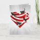 This is a unique cat lover's folded greeting card. It has a metallic red heart cut out with 4 black cats walking up, down and across on it with silver rays in the background. For all cat lovers especially black cat lovers! Send to your cat loving friends or cat loving significant other.