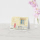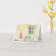 Folded greeting card with repro of original watercolor artwork of English motif with red mailbox. Blank message.
