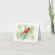 Folded greeting card with repro of original watercolor artwork of northern cardinal in pine branch. Blank message.