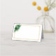 This folded name place card is shown in basic white with a lovely floral spray in colours of emerald green and gold accents.